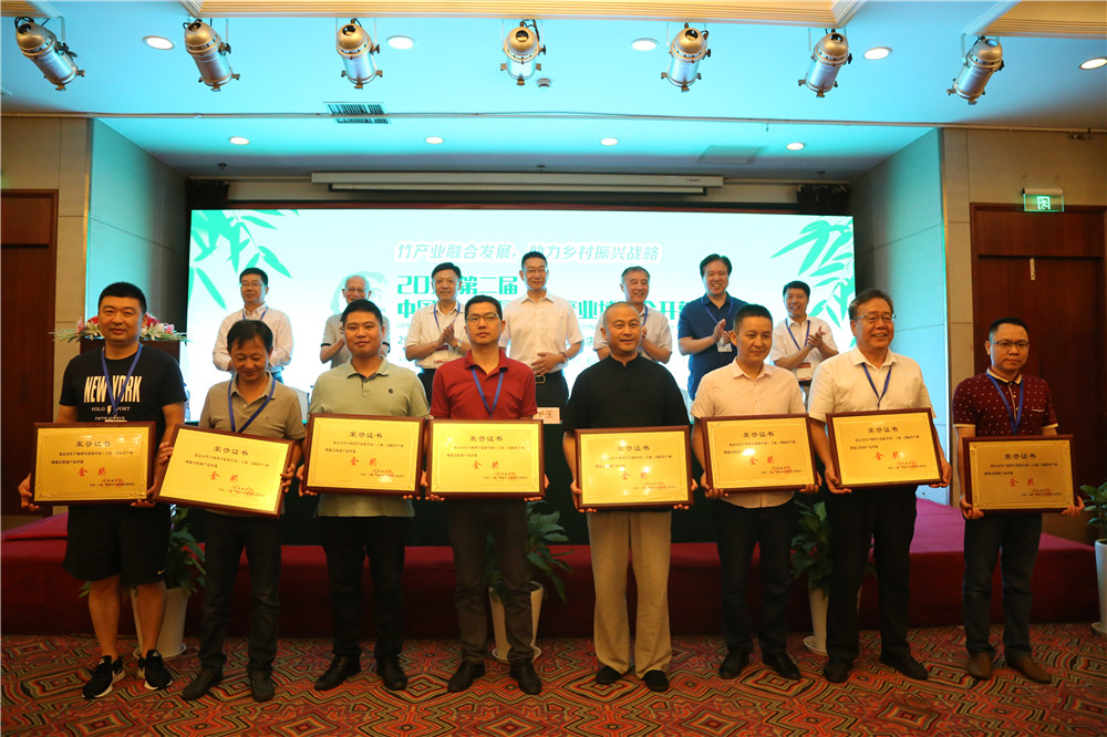 开幕式上,竹子分会副理事长汪奎宏宣读了《关于第二届中国(上海)国际竹产业博览会优质产品评选结果的通报》。为推进竹产业品牌建设,提高竹产品知名度和市场竞争力,拓展国内外市场,中国林学会组织开展了第二届中国(上海)国际竹产业博览会优质产品评选活动。经形式审查、专家初评、评审委员会评审等程序,最终评出获奖产品39项。其中,四川省宜宾纸业股份有限公司生产的“未漂白全竹浆食品包装原纸”等15个产品荣获竹博会金奖,浙江省安吉亚斐灯具厂生产的“绽放落地灯”等13个产品荣获竹博会银奖,福建省尤溪县一心剑家居用品有限公司生产的“竹制果盘系列”等11个产品荣获竹博会优质奖。