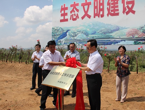 原国家林业局局长、中国林学会理事长赵树丛和山东省政协副主席、山东省林业厅厅长刘均刚为“栎类近自然人工林示范园”进行揭牌。原国家林业局造林司司长、中国林学会栎类分会名誉理事长王祝雄,山东日照市副市长徐淑利,山东日照市政协副主席郇梅等见证了揭牌仪式。