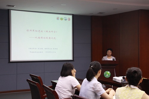 2018年8月10日,应中国林业科学研究院亚热带林业研究所邀请,《林业科学》副主编、编辑部主任张君颖带领编辑于静娴在富阳亚林所召开了期刊座谈会。亚林所科研人员、研究生和管理部门相关人员共60余人参加了座谈。会议由亚林所科研处副处长田晓堃主持。