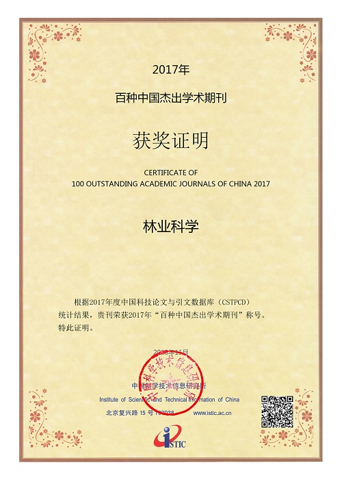 近日,中国科学技术信息研究所发布2017年度中国科技论文统计结果。《林业科学》被评为“2017年百种中国杰出学术期刊”,这是期刊第16次获此殊荣。“百种中国杰出学术期刊”由中国科学技术信息研究所根据中国科技论文与引文数据库(CSTPCD)每年的统计数据,并结合专家打分对每种期刊进行综合评定选出。