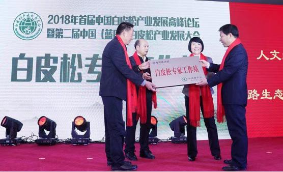 国家林业和草原局机关党委副书记、纪委书记王希玲和中国林学会副理事长兼秘书长陈幸良为蓝田“白皮松专家工作站”授牌