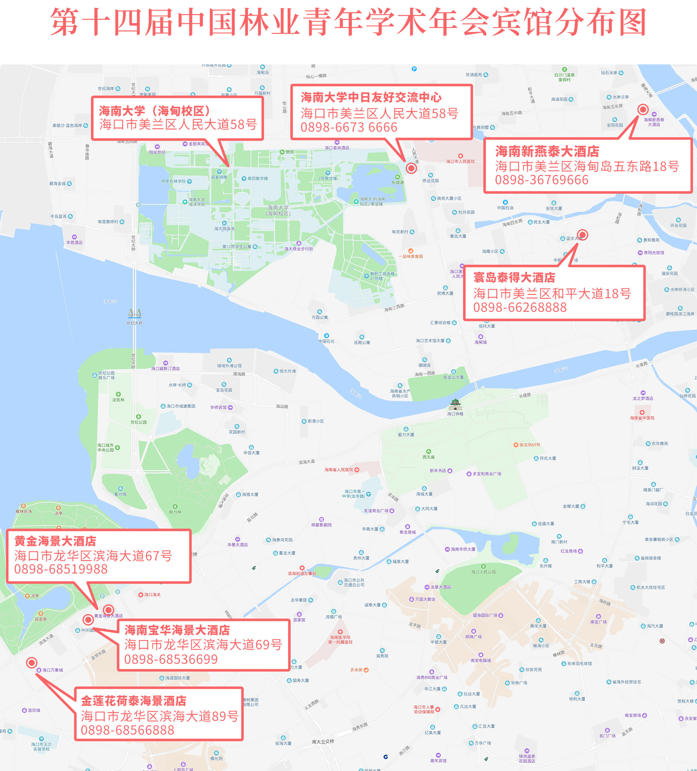 (二)地点:年会安排在海南大学校内,各分会场入住及报到宾馆见附件1。