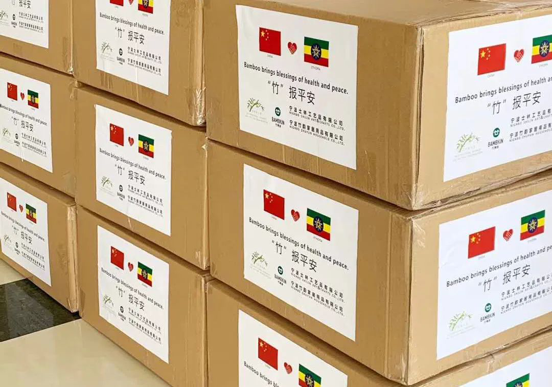 新冠肺炎(COVID-19)正在全球蔓延,埃塞俄比亚新冠肺炎患者不断增加,全国进入紧急状态。为了帮助埃塞俄比亚的竹子企业和相关机构防御新冠病毒,作为中国林学会科技服务团服务企业成员单位的宁波竹韵家居用品有限公司和宁波士林工艺品有限公司想方设法联系具有合格资质的口罩生产企业,采购40箱共8万只一次性医用口罩,并委托国际竹藤组织帮助协调分配使用。受疫情影响,大多数国际航班停飞,他们捐赠的物资几经周折最终成功运抵埃塞俄比亚。目前,这批物资已在埃塞俄比亚完成清关,转运至国际竹藤组织东非区域办事处,工作人员正在帮助分配给当地相关部门和竹子企业。