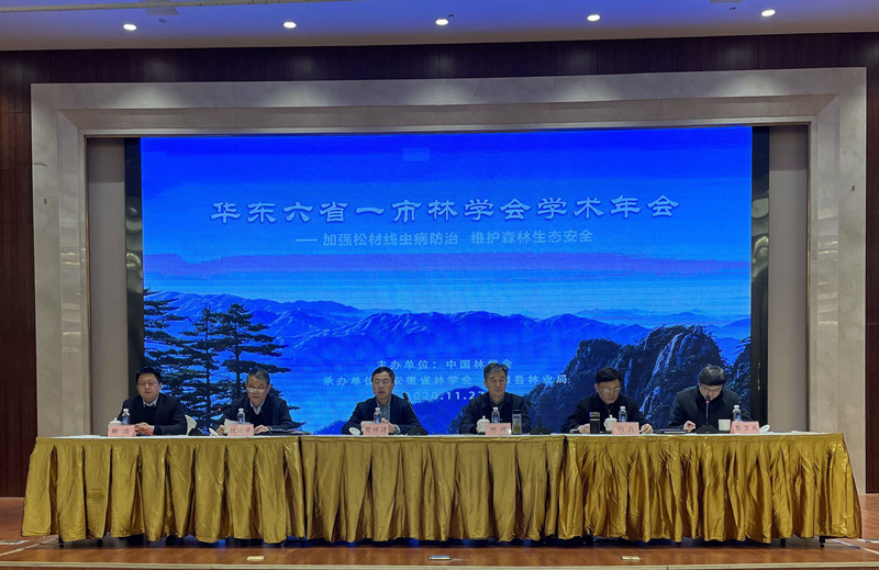 2020年11月27日,由中国林学会主办,安徽省林学会和旌德县林业局承办的“华东六省一市林学会学术年会”在安徽省旌德县召开。安徽省林学会理事长、安徽省林业局副局长邱辉、江西省林学会理事长魏运华、上海市林学会理事长刘磊、中国林学会学术部主任曾祥谓、旌德县副县长解浩等有关领导出席会议并致辞,安徽省林学会蔡卫兵秘书长主持会议。来自华东六省一市林学会以及松材线虫病研究和防控方面的科技人员近100人参加会议。