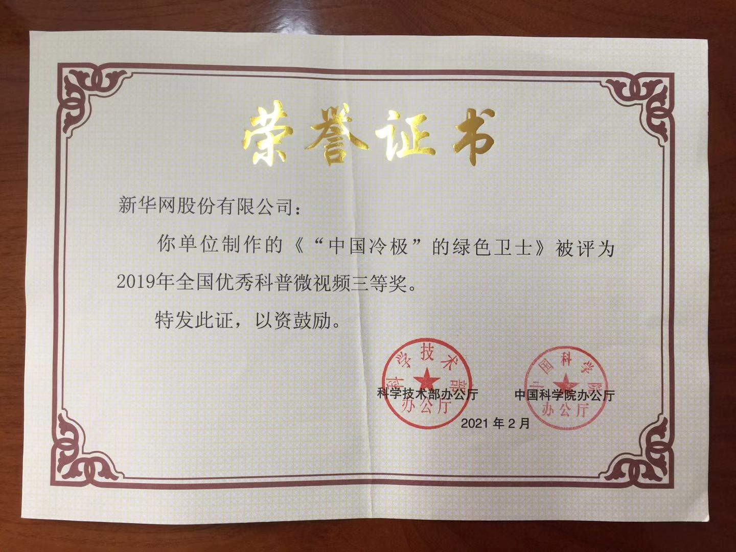 《为什么黄鹤一去不复返——鹤宝仔仔记》、《“中国冷极”的绿色卫士》此前获得中国林学会举办的“科普中国”全国林业和草原科普微视频大赛优秀作品。