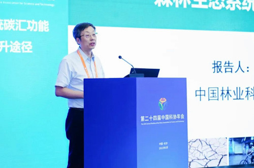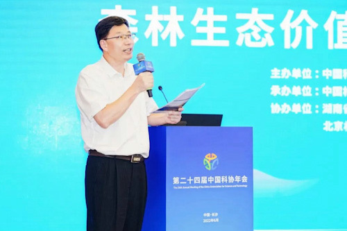 2022年6月26日—27日,第二十四届中国科学技术协会年会分会场——森林生态价值实现与绿色发展高层论坛在长沙举行。中国林学会理事长、原国家林业局局长赵树丛,中南林业科技大学校长廖小平,湖南省林业局党组成员、副局长吴剑波,中国工程院院士、湖南省科协副主席、中南林业科技大学党委副书记吴义强,中国林学会副理事长兼秘书长陈幸良,中国林学会副理事长、中国林业科学研究院原院长刘世荣,浙江农林大学原校长周国模,以及中南林业科技大学、湖南省林业科学院、全国各地林草主管部门负责同志、相关科研教学单位、生产经营单位的科技工作者等共计100人现场参会,中国工程院院士、北京林业大学尹伟伦教授在北京林业大学视频分会场出席会议并作大会主旨报告。
