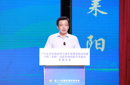 “科技创新助力乡村振兴”, 第二十四届中国科协年会森林生态价值实现与绿色发展高层论坛暨中国(耒阳)油茶科技创新产学融合发展大会6月27—28日在湖南省耒阳市举行。本次论坛和大会旨在推动实现森林生态价值、绿色发展,助力油茶产业做大做强。大会集聚了政、金、科、媒、校、企等各界精英,实现“跨界联合”,多学科行业助推耒阳油茶产业高质量发展。