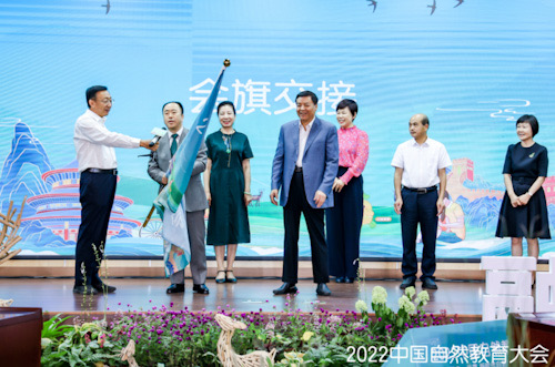 大会决定,2023年中国自然教育大会在广东举办。因疫情原因广东省代表不能现场接旗,广东省林业局党组书记、局长陈俊光通过视频进行会旗交接。