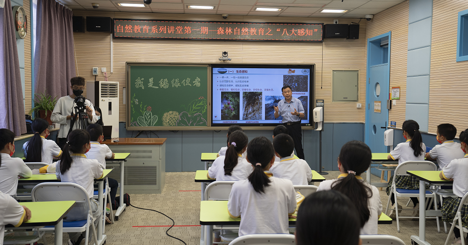 北京林业大学林学院院长贾黎明教授以《森林自然教育之“八大感知”》为题,结合自身几十年行走森林、研究森林的感悟,用生动的图片和通俗易懂的语言,向小学生们展示我国森林之美,解读关于森林生态系统传递给人类的生命感知、生态感知、美学感知、生产感知、情感感知、五觉感知、健康感知、文化感知,深化小学生们对森林的认识,体验自然的无限魅力,播种自然保护的种子。
