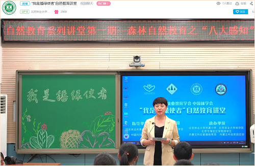 中国林学会、中国林业教育学会做简短视频致辞,期望中小学生通过自然讲堂计划的精彩纷呈报告,深化自然认知和体验,体会大自然的精彩故事,向自然学习,与自然对话,共同关注自然、亲近自然、热爱自然,成为植绿播绿的小小行动家!