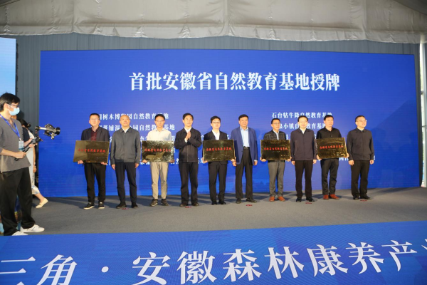 会上,举行了首批安徽省自然教育基地授牌仪式。中国树木博览园自然教育基地等10家单位荣获首批“安徽省自然教育基地”称号。