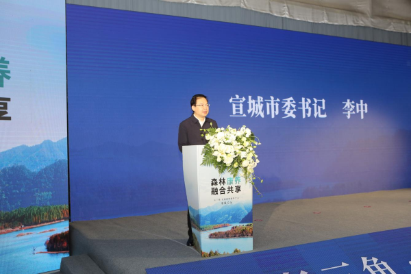李中在致辞中指出,近年来,宣城市深入学习贯彻习近平生态文明思想,积极践行“绿水青山就是金山银山”理念,全力推进资源高效开发利用和产业跨界融合发展,打造了皖南“川藏线”、恩龙康养小镇、灵芝小镇等森林旅游精品线路和森林康养示范基地,正在谋划推进长三角(安徽)生态绿色康养基地建设。宣城市是长三角地理中心和都市圈辐射中心,是生态宜居“福地”、国家战略“要地”、投资兴业“宝地”,良好的发展势头和营商环境正吸引越来越多的客商纷至沓来,宣城市“追赶江浙、争先江淮”的步伐越来越铿锵有力。希望在座的各位专家和企业家帮助宣城开拓视野、明晰思路、创新打法。宣城市也将借助这一平台,与大家深化合作,共享绿色红利、共闯发展蓝海、共创美好明天。
