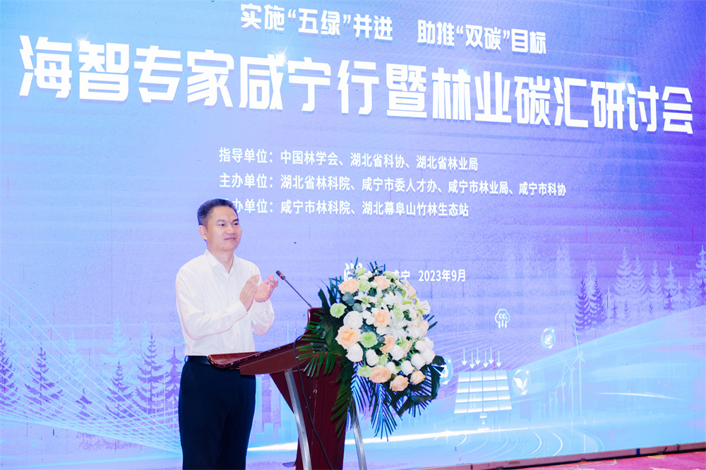 2023年9月25日,由中国林学会、湖北省科协、湖北省林业局指导,湖北省林科院和咸宁市委人才办、市林业局、市科协联合主办的海智专家咸宁行暨林业碳汇研讨会在咸宁市召开。国内外“双碳”领域专家、高校科研院所代表与企业家聚焦“实施五绿并进·助推双碳目标”主题,共探“双碳”目标下发展路径,畅想低碳发展未来。