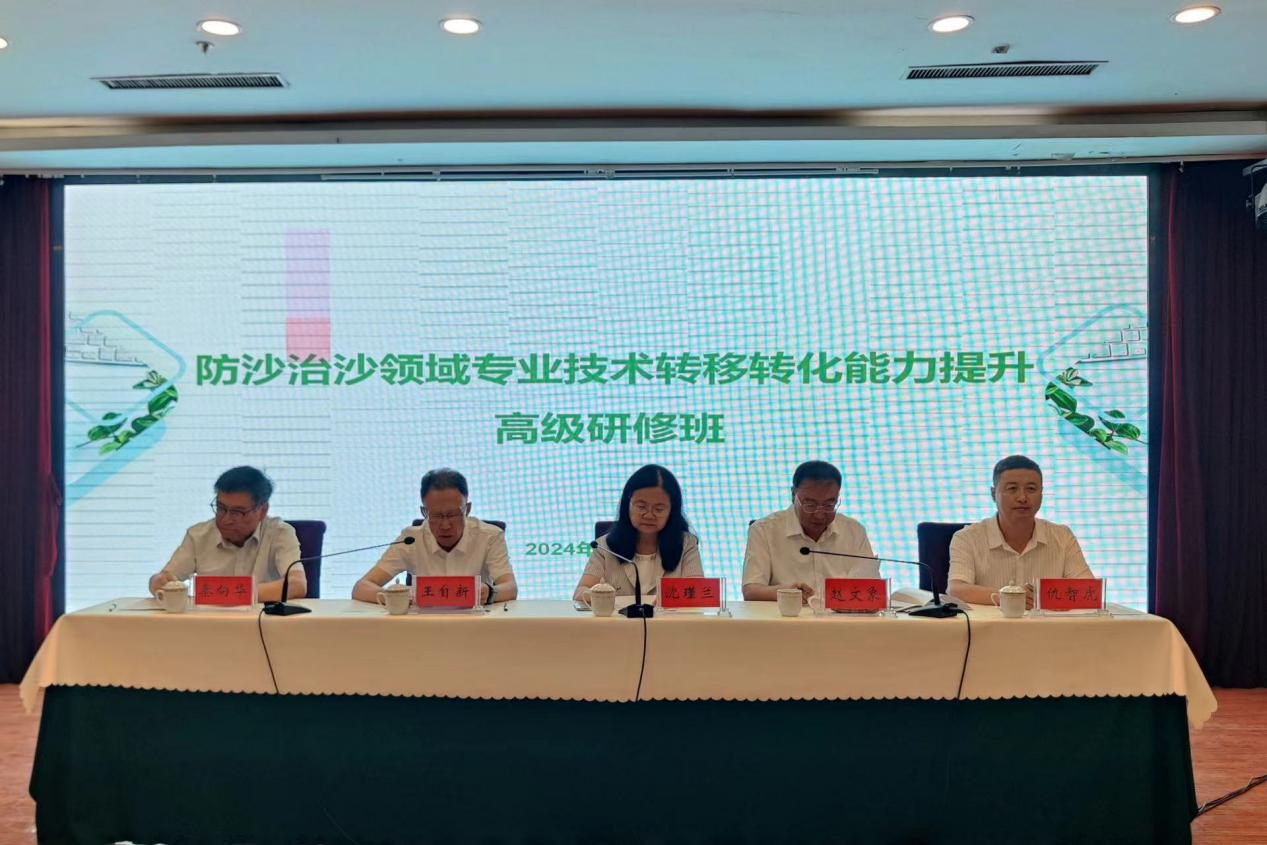 为进一步贯彻落实习近平总书记在内蒙古自治区巴彦淖尔市主持召开加强荒漠化综合防治和推进“三北”等重点生态工程建设座谈会上的重要讲话精神,提升防沙治沙领域专业技术人才的产学研能力,促进防沙治沙领域技术成果转移转化,推动防沙治沙领域技术创新发展,服务国家经济高质量发展,2024年7月8日至12日,中国林学会举办的防沙治沙领域专业技术转移转化能力提升高级研修班在宁夏银川市成功开班。中国林学会副秘书长沈瑾兰出席开班式并围绕本次高研班举办的背景、主要目的和重要意义等方面作动员讲话,宁夏回族自治区林业和草原局副局长王自新、宁夏回族自治区科学技术协会二级巡视员赵文象出席开班式并致辞、讲话,来自全国林业和草原行政主管部门、高等院校、科研机构、企事业单位的70余名从事防沙治沙专业技术转移转化、推广应用的专业技术人员以及在防沙治沙管理岗位工作的经营管理人员参加了本次高研班。