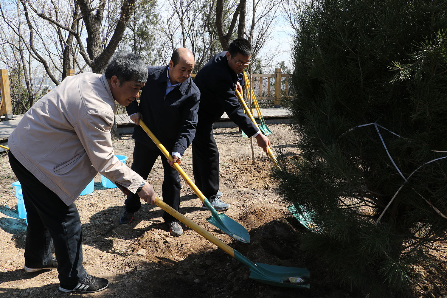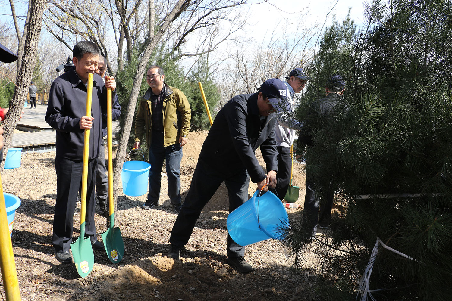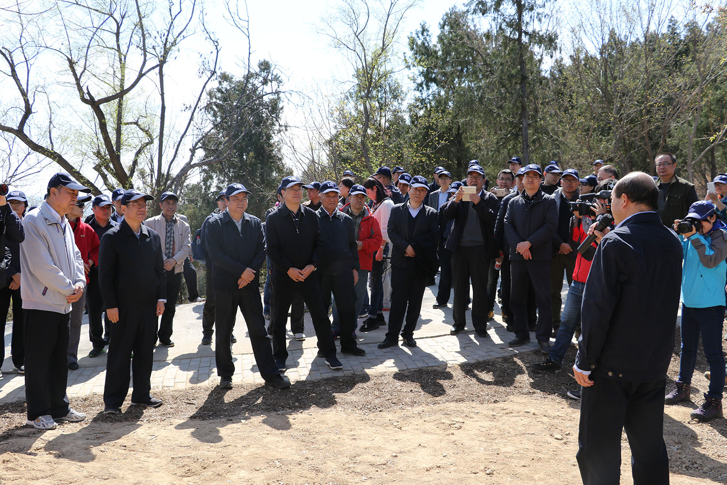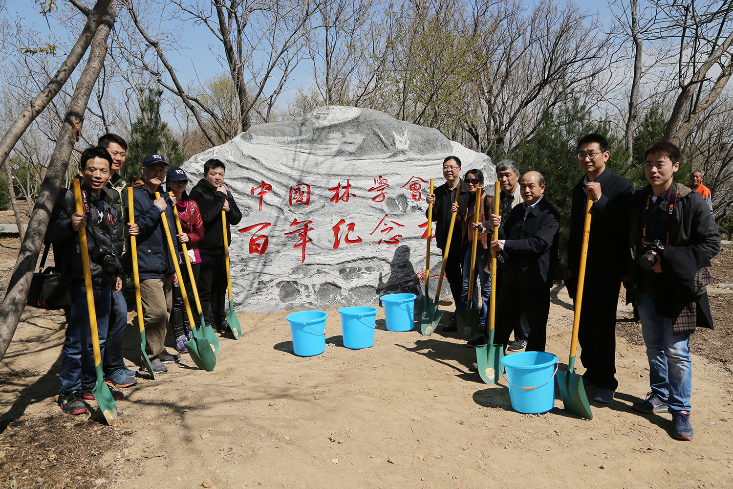 春回大地万物新,植树添绿正当时。2017年4月1日,中国林学会在北京百望山森林公园组织“百年纪念林”植树活动,以此纪念中国林学会成立100周年。国家林业局局长张建龙、中国林学会理事长赵树丛、国家林业局副局长彭有冬、北京市人民政府党组成员夏占义为百年纪念林纪念石揭牌。国家林业局党组成员谭光明、国家林业局总经济师张鸿文、中国工程院院士马建章,国家林业局局机关和直属单位主要负责人,林业届知名专家代表,部分林业高校领导,北京市园林绿化局有关领导,参加“百年人物评选座谈会”的部分省区林学会理事长和常务理事,学会在京分支机构主任委员、秘书长等约100人参加植树活动。中国林学会副理事长兼秘书长陈幸良主持纪念石揭牌仪式。中国林学会副理事长张守攻、费本华,副秘书长李冬生、刘合胜及学会全体在职职工与离退休职工代表参加揭牌并植树。