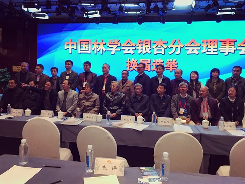 银杏分会副主任委员、中南林业科技大学王义强教授做了分会工作报告,主要报告:(1)第四届理事会任期内的工作情况回顾;(2)关于本次中国林学会银杏分会理事会的换届选举;(3)对中国林学会银杏分会五届理事会工作的建议。 会议通过民主选举,产生了新一届委员会和常务理事人选,其中曹福亮担任主任委员,汪贵斌、程水源、王义强、李群、邓荫伟、邢世岩、朱评、王莉、隋道庆担任副主任委员,郭起荣担任秘书长,郁万文担任副秘书长。