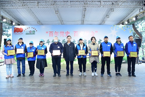 在启动仪式上向“庆祝建党100周年全国学会征文、影像作品及节目征集活动”优秀组织单位颁发了奖牌。