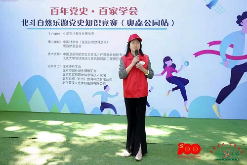 为全面贯彻中共中央《关于在全党开展党史学习教育的通知》工作部署,认真落实国家林业和草原局党组《关于开展党史学习教育的工作方案》和中国科协党组关于《科协系统开展党史学习教育工作方案》,创新党史学习形式,提升学史活动体验感,将党史学习、自然体验、体育运动进行融合创新,2021年6月3日,由中国科协科技社团党委主办、中国林学会和爱自然基金会承办的“百年党史 百家学会” 北斗自然乐跑党史知识竞赛(奥森公园站)在北京奥林匹克森林公园南园成功举办。中国科协科技社团党委副书记刘桂荣出席本次活动并作动员讲话,来自中国科协科技社团党委、部分全国学会的干部职工近200人参与此次活动。
