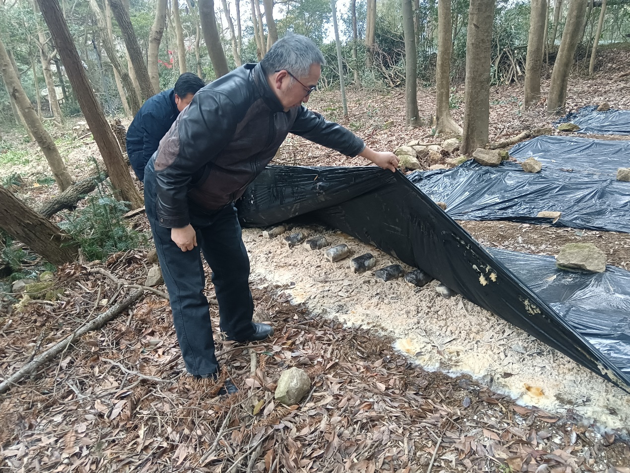 中国林科院亚林所研究员谢锦忠指导林下食用菌栽培