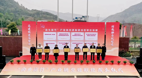 为全面贯彻落实党的二十大精神,加强基层组织建设,深化党建联建机制,以高质量党建引领高质量发展,本着“共建共赢、互帮互助、共同提升”原则,结合多方实际,3月27日,浙江省温州市泰顺县司前畲族镇党委在温州甬泰竹业有限公司召开泰顺县竹产业发展论坛暨“畲乡富竹”产业链党建联建成立仪式。中国林业科学研究院亚热带林业研究所党委书记、所长吴红军,中国林学会学术部主任、中国林学会第二党支部书记曾祥谓,县政协党组书记、主席雷全勉,县委常委、组织部长周碧素,县人民政府副县长严炳宽,县科协、县科技局、县自然资源和规划局、县农业农村局等单位主要负责人,司前畲族镇班子成员、镇相关科室负责人, 司前畲族镇12个村主要干部以及宁波士林工艺品有限公司、浙江利众竹木有限公司、温州甬泰竹业有限公司等党建联建成员单位负责人共100余人出席活动。