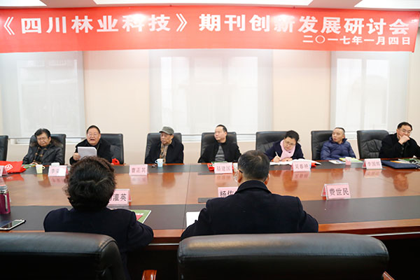2017年1月4日,《四川林业科技》期刊创新发展专家研讨会在成都召开。四川省林学会名誉理事长曹正其,常务副理事长骆建国,期刊主编李荣伟,副理事长、期刊副主编杨灌英及九届编委会编委参加会议,编辑部全体工作人员列席会议。会议由省林学会副理事长兼秘书长、期刊常务副主编王莉主持。