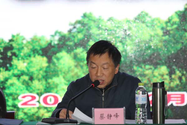 蔡静峰副厅长代表省林业厅对省林学会工作提出了三点希望,一是要认清形势,明确任务。二是要端正理念,找准定位。三是要改革创新,做强做实。并表示省林业厅将全力支持省林学会各项事业的发展,会在资金扶持、平台搭建、咨询决策和购买服务上为林学会的发展营造有利的外部环境。希望省林学会第八届理事会按照省林业厅党组的要求,认真学习和贯彻习近平总书记系列讲话精神,牢固树立保护优先,绿色发展的理念,紧紧围绕中央和省委的统一部署,围绕生态立省战略和林业中心工作,加强学会自身建设,紧密团结全省广大会员和林业科技工作者,积极发挥学会人才荟萃、智力密集、联系广泛的优势,围绕中心,服务大局,开拓创新,大力推进林业科技进步,为全省生态文明建设以及经济社会发展作出新的更大的贡献!