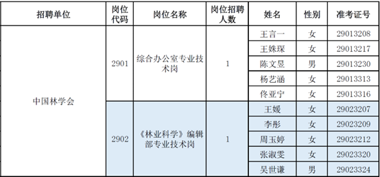 5.体检与考察人选名单及有关安排将在中国林学会官网(http://www.csf.org.cn/)和国家林业和草原局公开招聘服务平台(http://211.167.243.189/LYJBM/xxfw/portal/index.jsp)发布,请注意查询并保持手机畅通。